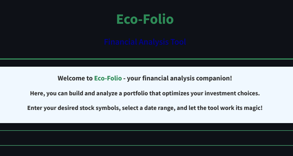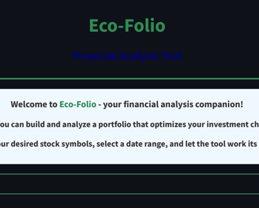 This is Eco-Folio, a financial analysis companion tool built by one of our interns, Martin Palencia. It uses real world data to optimize user investment choices.